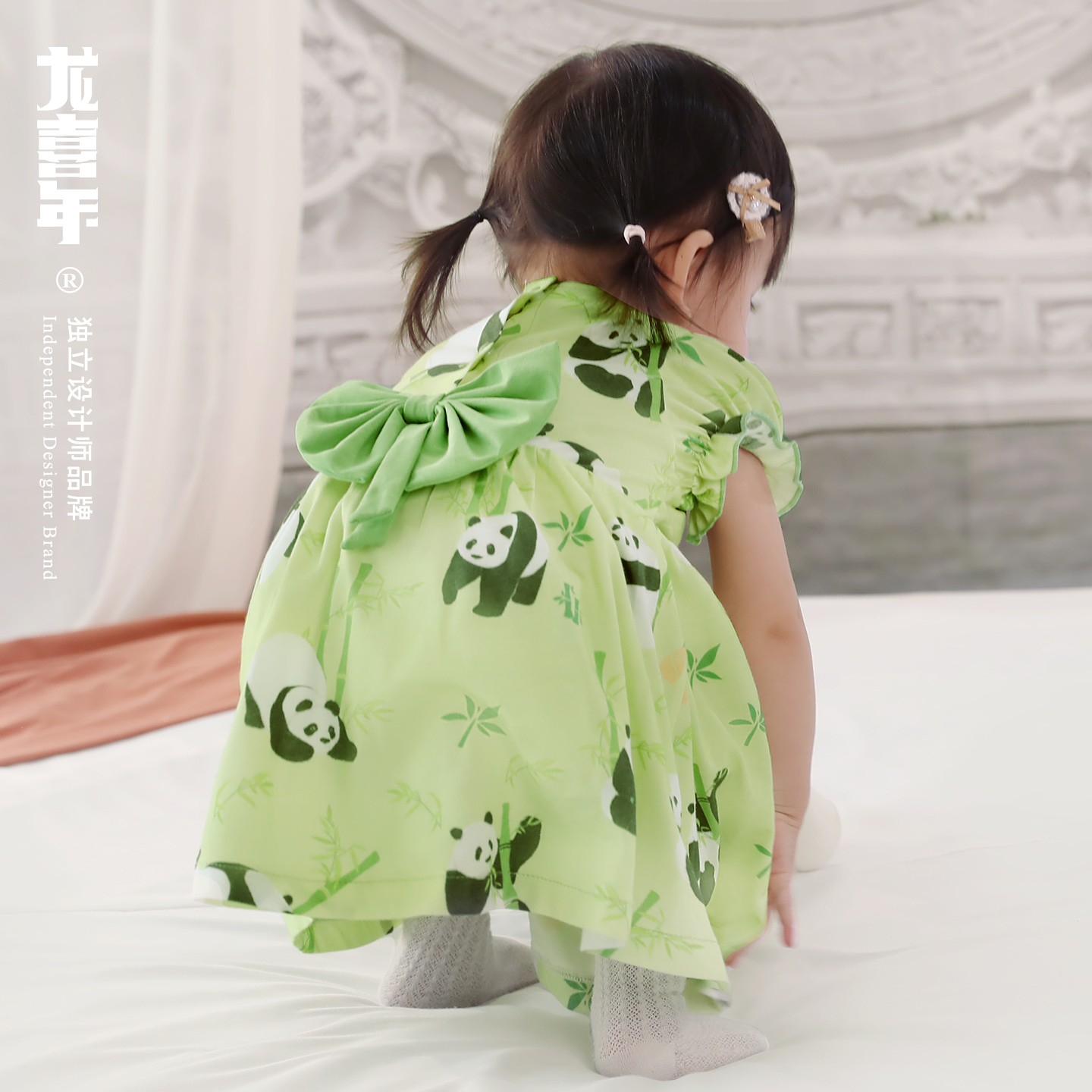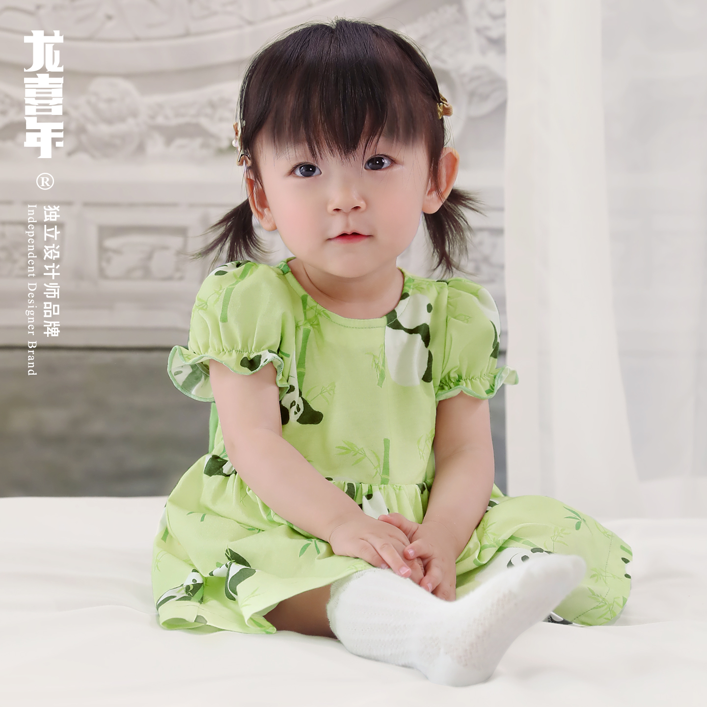 龙喜年婴儿宝宝衣服女孩小童公主裙子纯棉印花圆领短袖 儿童连衣裙