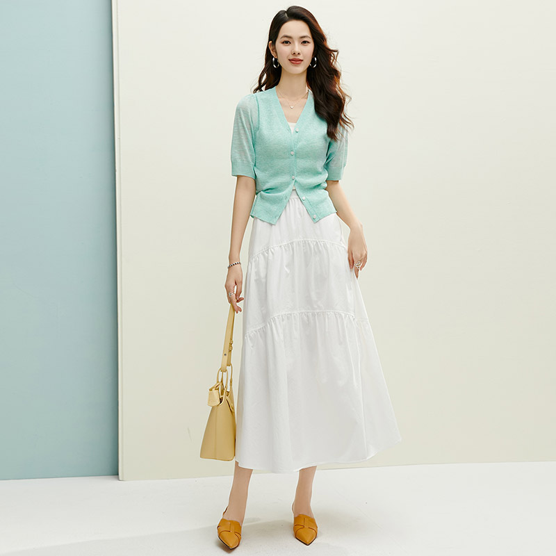 2025夏显轻上衣轻薄V领针织开衫 清仓 女 断码 晚白