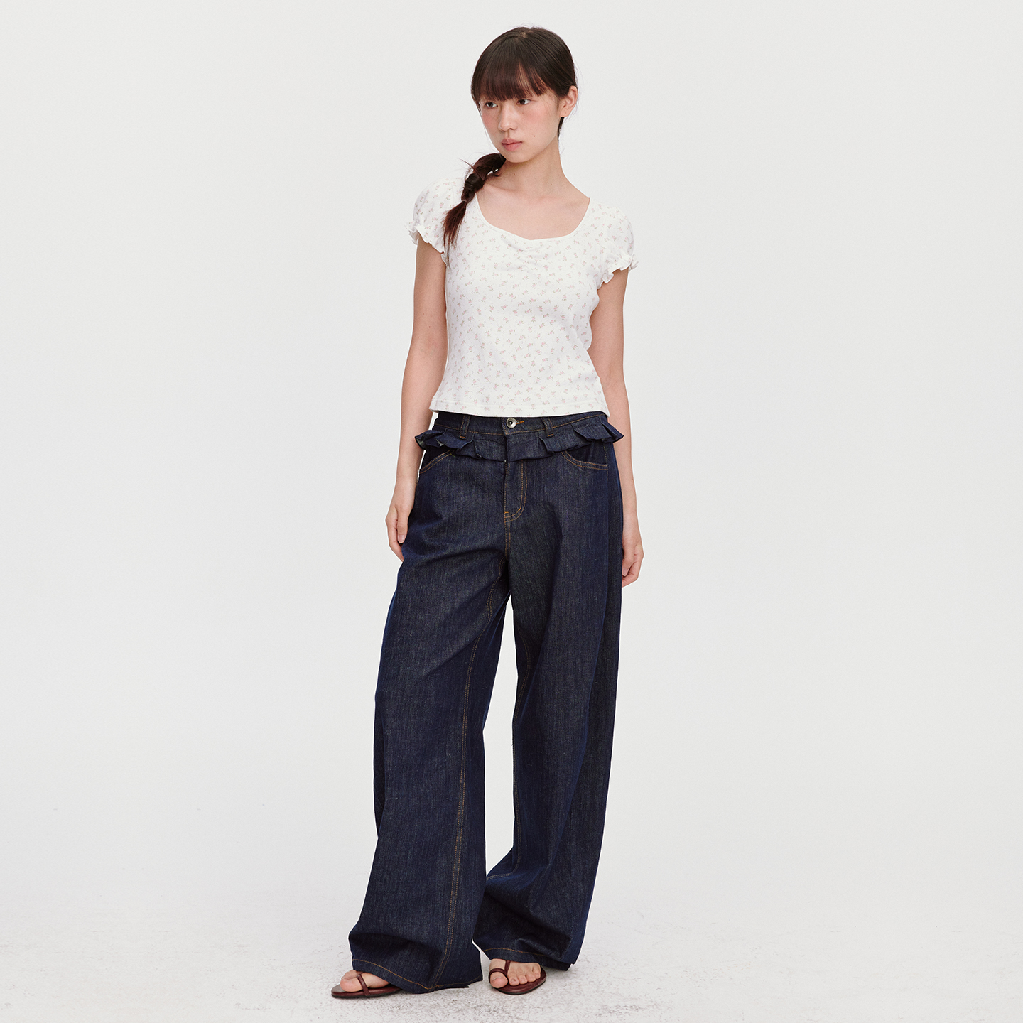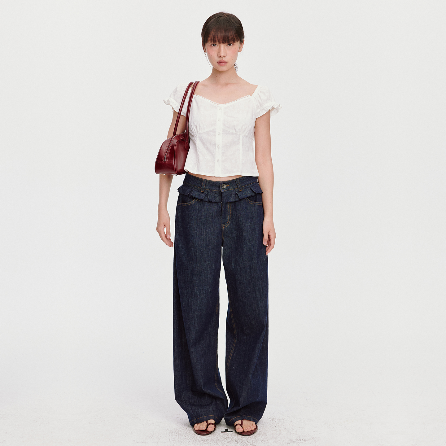 omont蛋挞家复古阔腿弯刀牛仔裤 子 2025夏设计感小众高腰显瘦长裤
