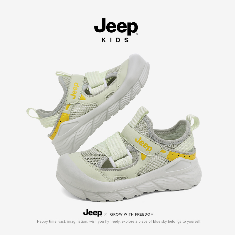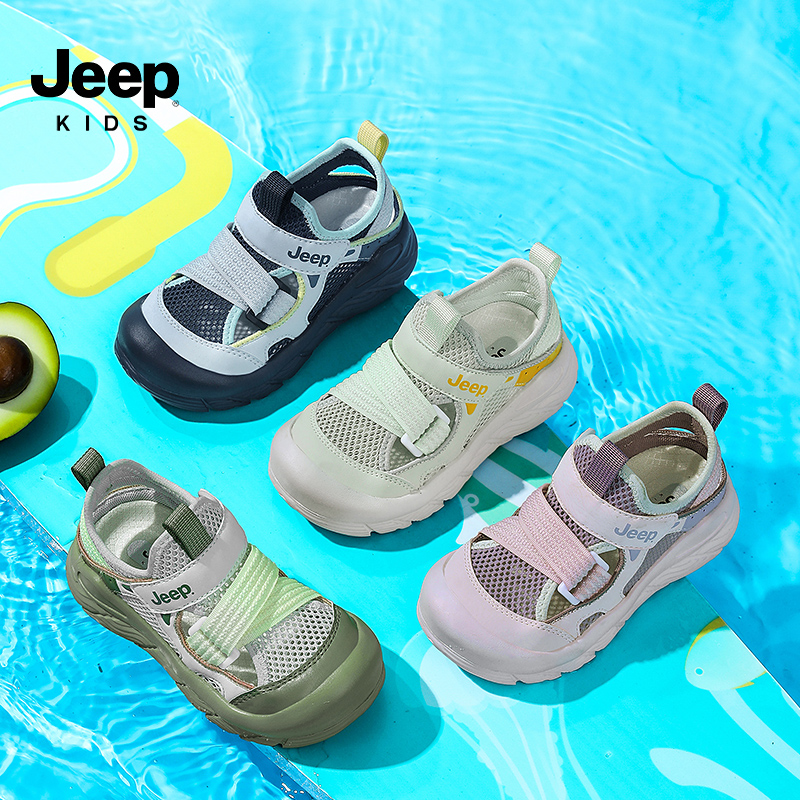 沙滩鞋 网面透气男童女童速干涉水溯溪鞋 男孩 夏季 JEEP儿童包头凉鞋