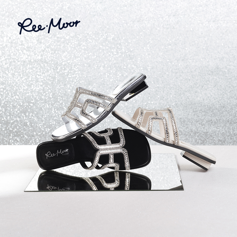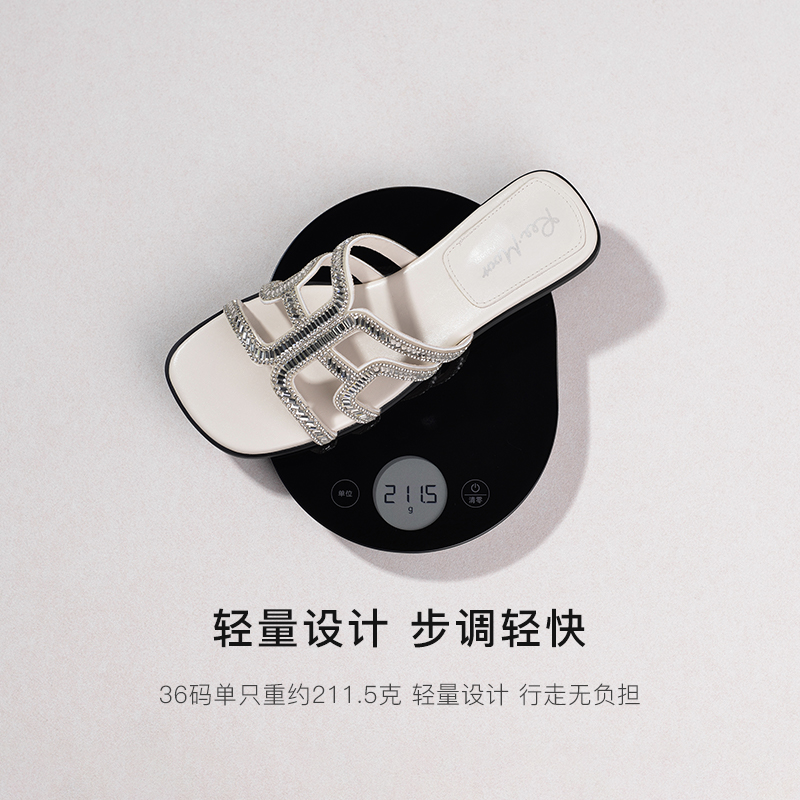 水钻拖鞋 法式 女外穿平底一字凉拖高级感 新款 REEMOOR睿慕2025夏季