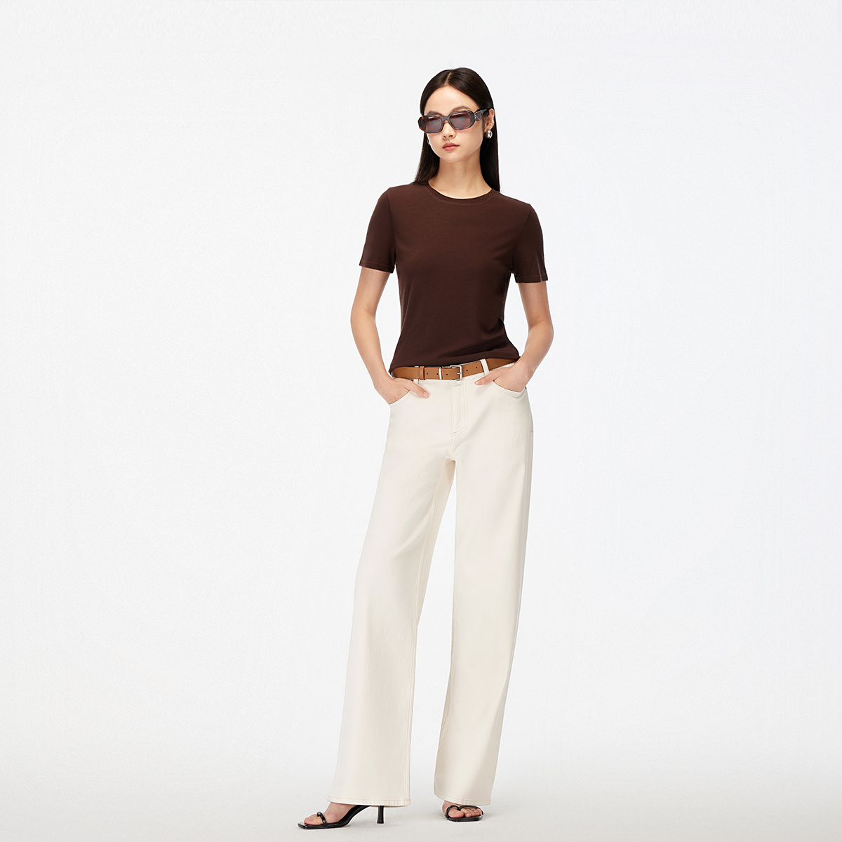 高腰显瘦百搭休闲裤 新款 女Q 女秋季 班尼路S&K系列复古蓝阔腿牛仔裤