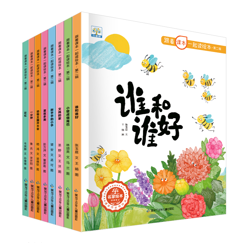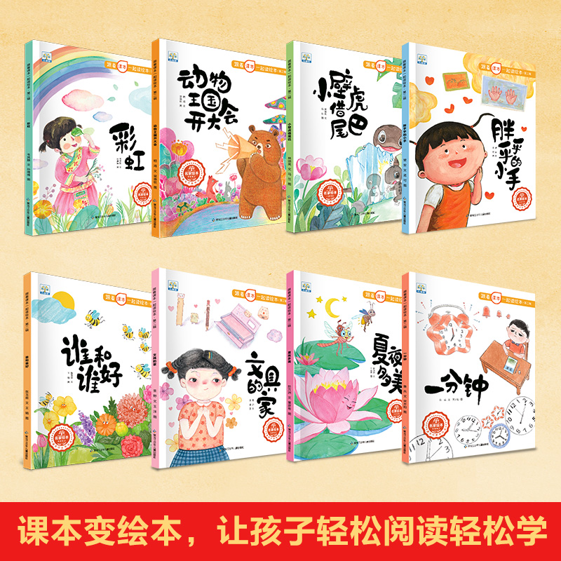 8册跟着课本一起读绘本第二辑一年级下册课本八大篇目和大人一起读儿童绘本3 6岁小壁虎借尾巴动物王国开大会名家获奖绘本有声伴读