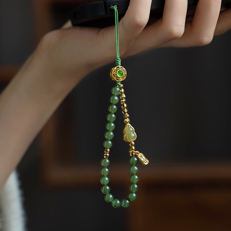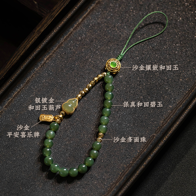 大善堂玉见福禄和田玉葫芦手机链挂件手腕挂绳绿色高级玉石精致女
