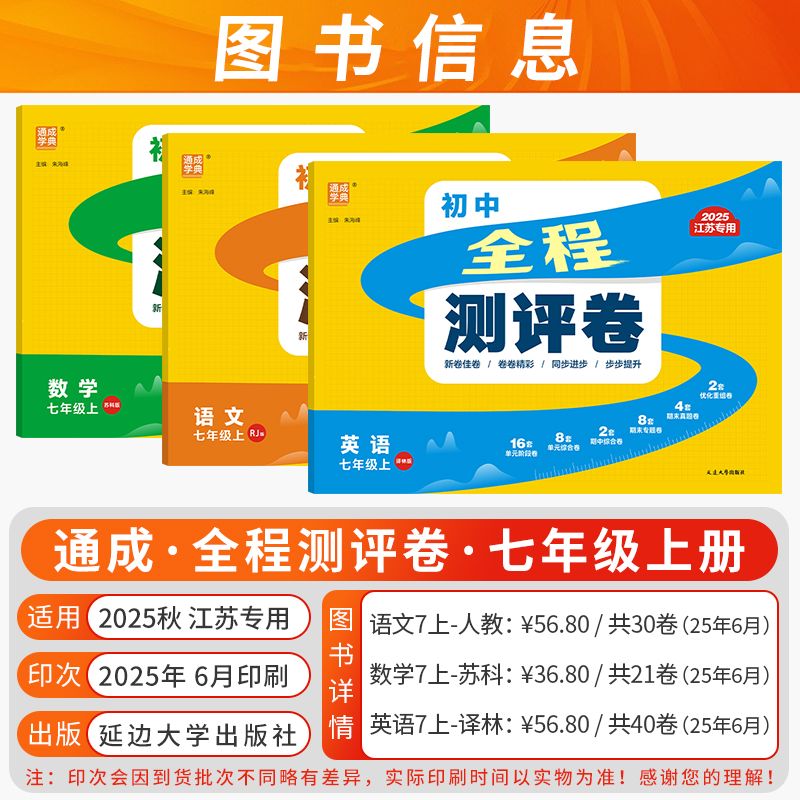 江苏专用2025秋全程测评卷初中七八九年级上下册语文数学英语物理化学人教版 译林沪教全一册通成学典期期中期末卷综合测试卷 苏科版
