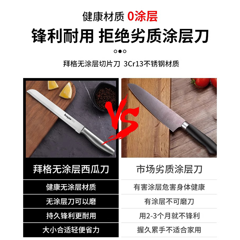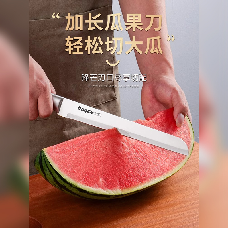 拜格水果刀家用全钢一体锋利不锈钢切西瓜刃加长大号瓜果刀商用