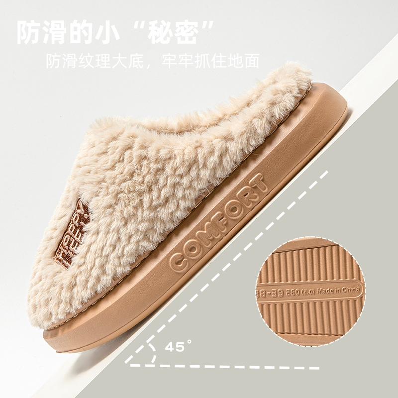 家居室内保暖厚底防滑棉拖女士冬 2025新款 加厚毛绒棉拖鞋 女秋冬季