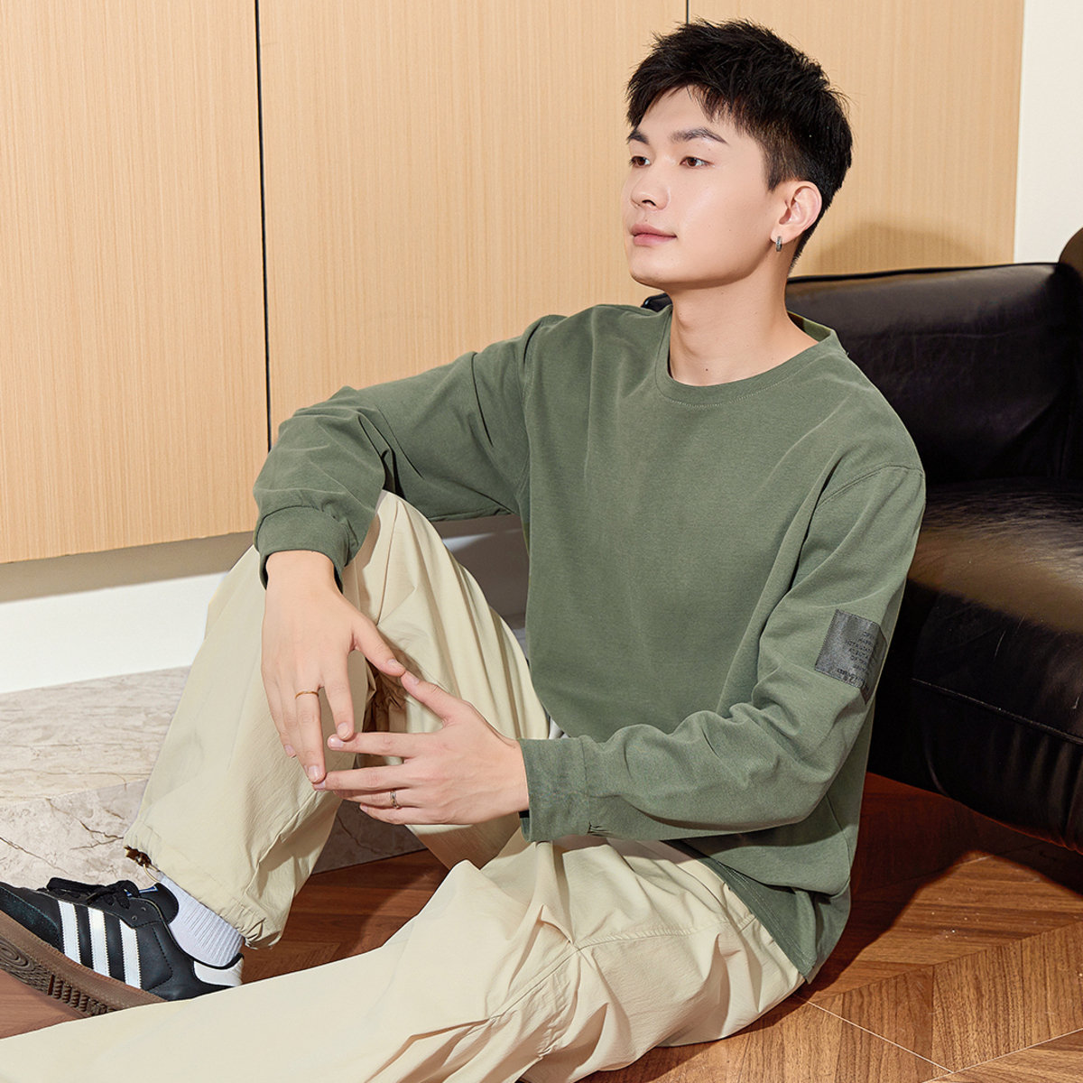 T恤男宽松纯棉圆领潮流内搭纯色打底衫 长袖 上衣 新款 唐狮2025秋季