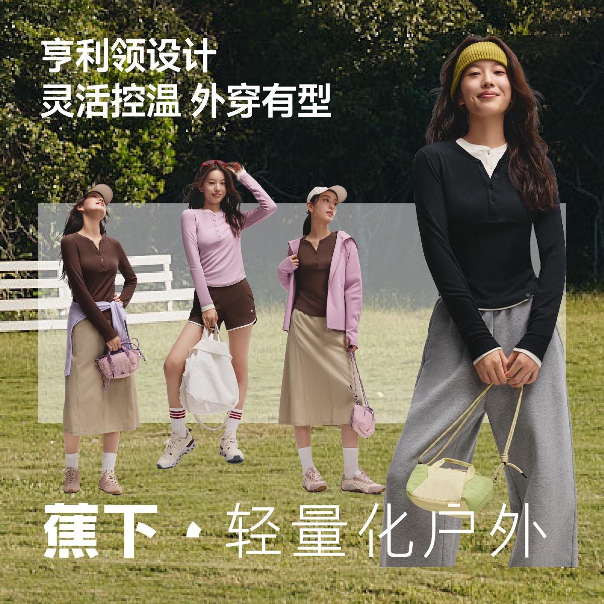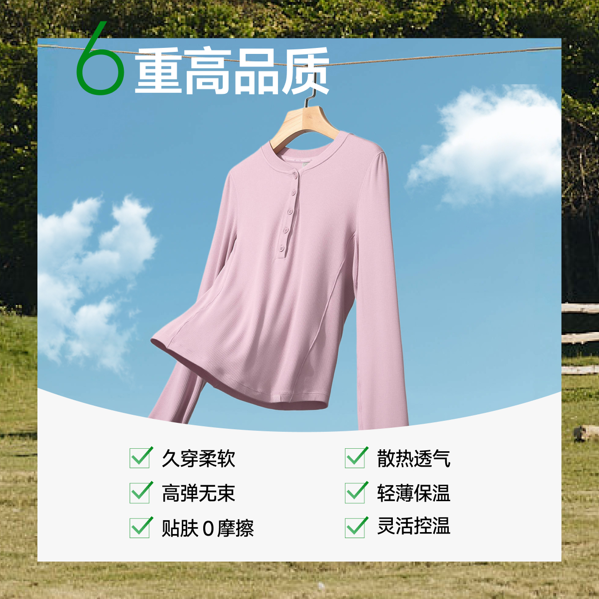 显瘦低领打底衫 T恤v领秋冬修身 半开领白色上衣 女长袖 蕉下亨利衫
