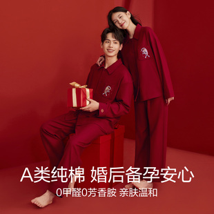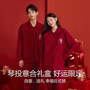 红豆情侣红色睡衣纯棉男结婚春秋款 女2025蛇本命年礼物家居服套装