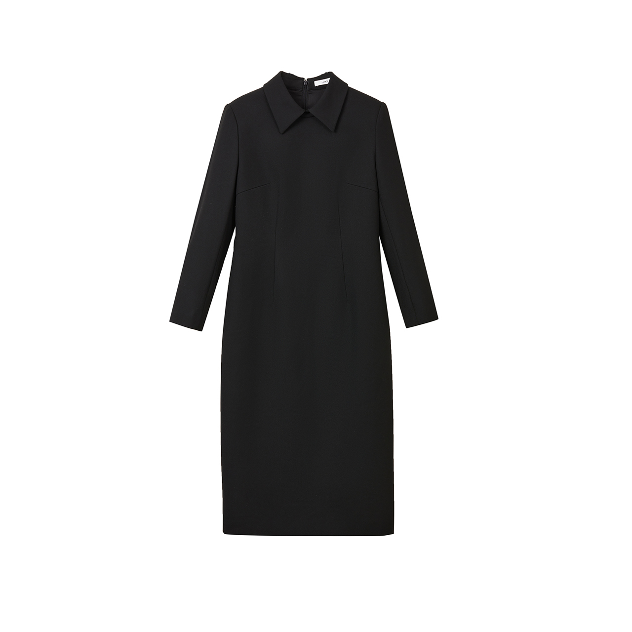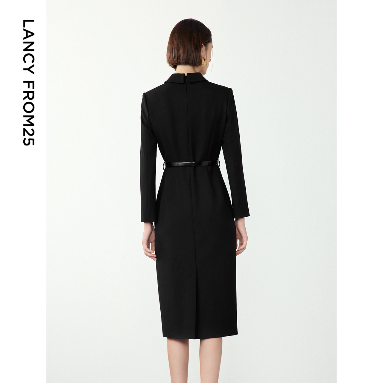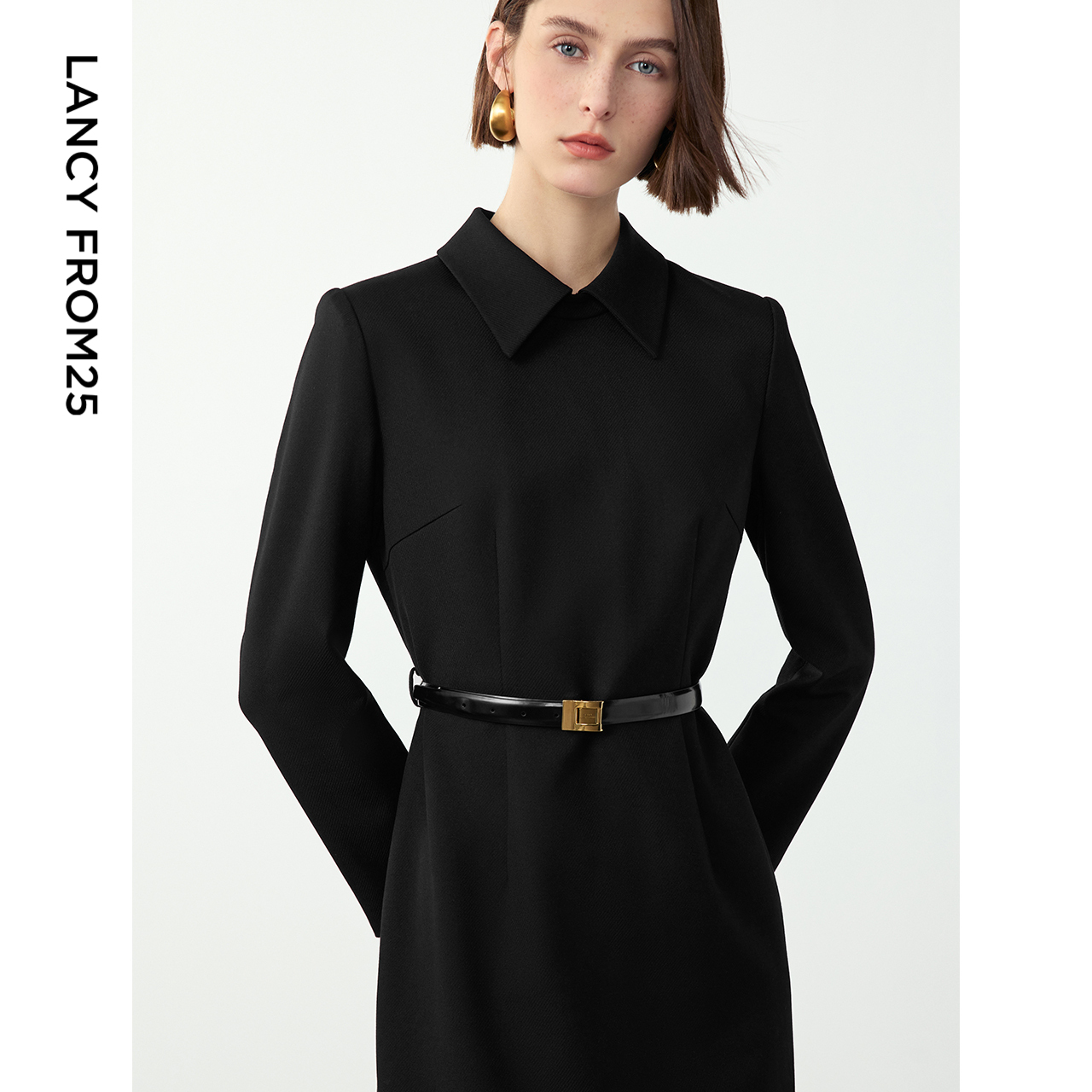领收腰显瘦中长款 朗姿气质小黑裙修身 设计感衬衫 新款 连衣裙 冬季