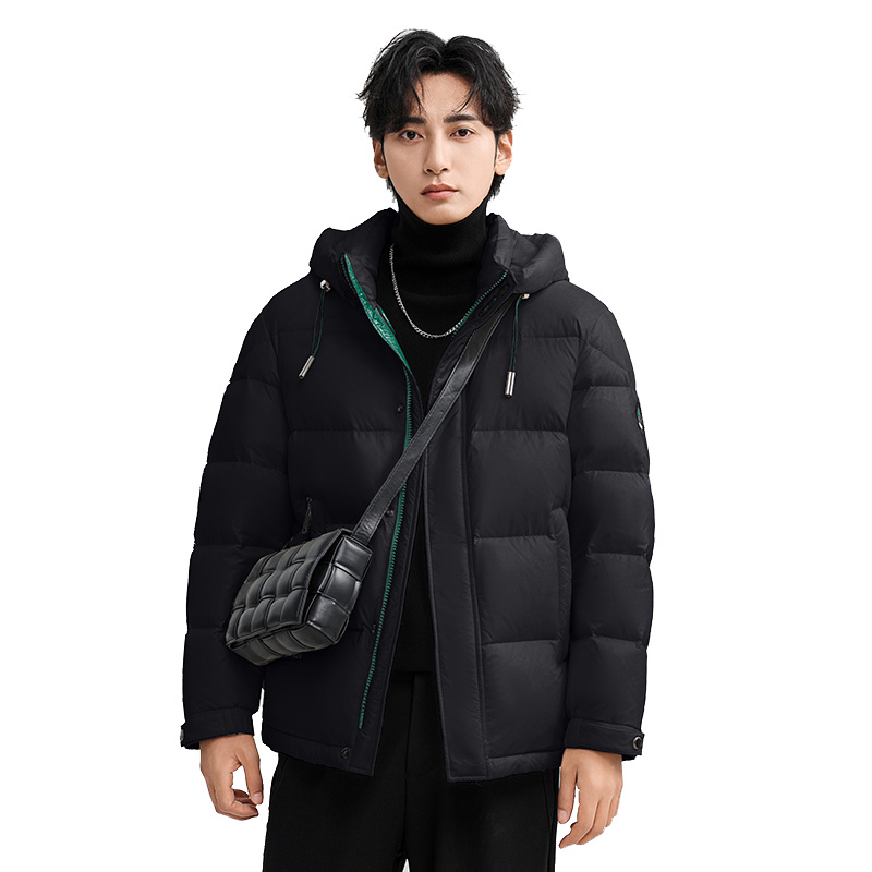 式 太平鸟男装 衬衫 宽松短款 保暖外套黑色防寒夹克 轻薄羽绒服冬季