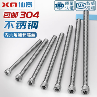 加长M3M4M5M6M8M10M12 304不锈钢内六角螺丝钉杯头全牙圆柱头螺栓