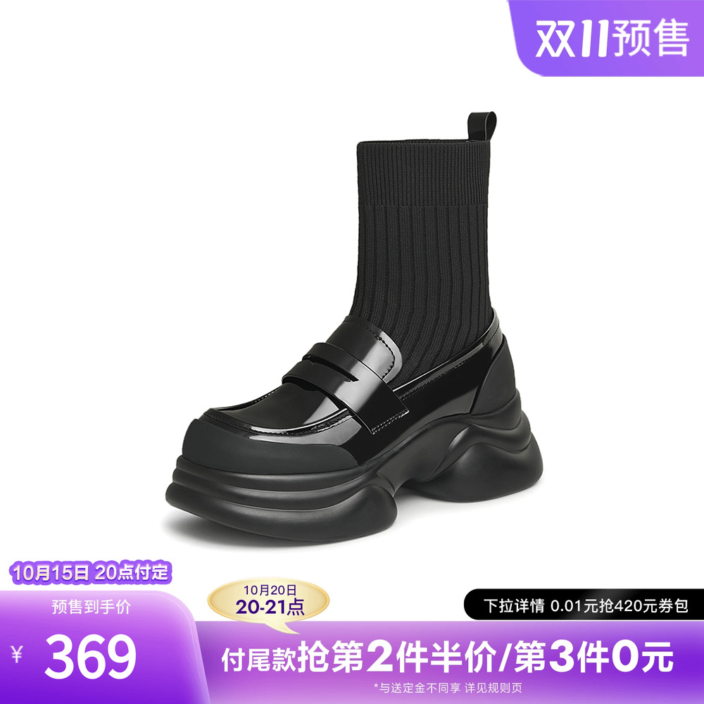 瘦瘦弹力袜靴短靴CCJ02CZ5 TATA他她厚底英伦靴乐福鞋 双11预售
