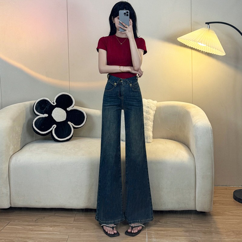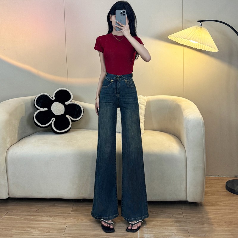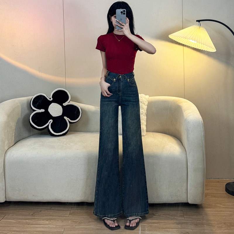 杨幂同款 广角裤 Miss 微喇叭裤 复古风显瘦休闲 Sixty春秋牛仔裤