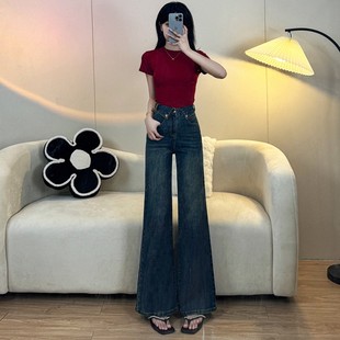 弹力显瘦喇叭长裤 复古小个子九分春秋季 修身 2025新款 子 牛仔微喇裤