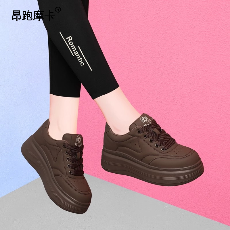 软底不累脚舒适板鞋 厚底松糕运动休闲鞋 女 女秋冬季 昂跑摩卡德训鞋