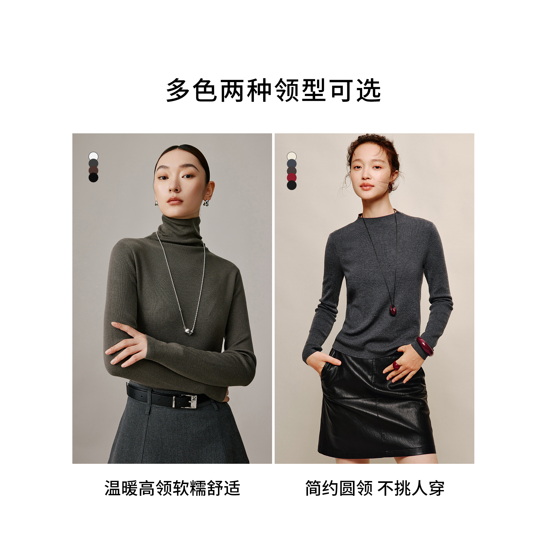 韩系穿搭米色上衣薄款 新款 女高级感2025秋冬装 羊绒混纺高领针织衫
