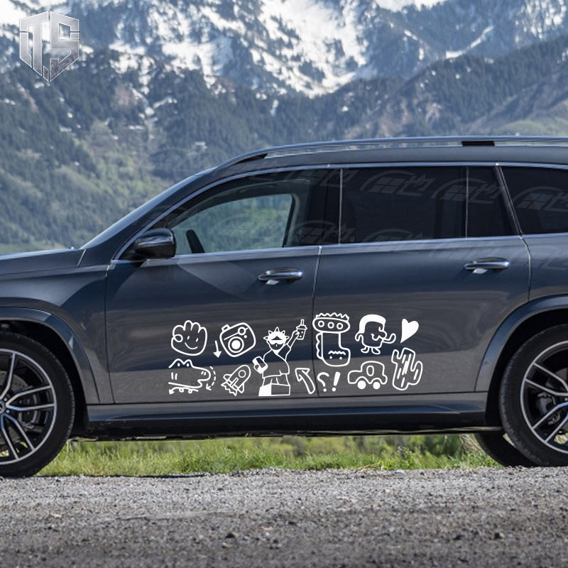 涂鸦卡通车贴可爱卡通车身汽车贴纸创意个性 饰防水车贴 动漫车门装