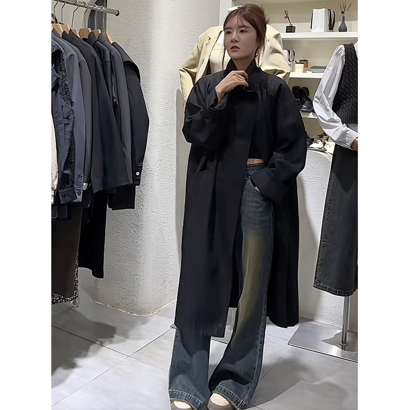 RUISHI芮时 百搭风衣外套女春秋 立领挺括定制一粒扣廓形短长款