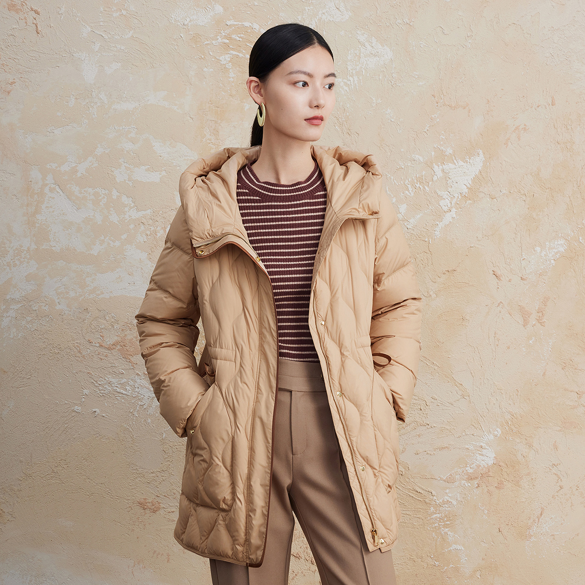 保暖外套女 简约风连帽长款 菲妮迪品牌90白鹅绒羽绒服2024冬季 新款