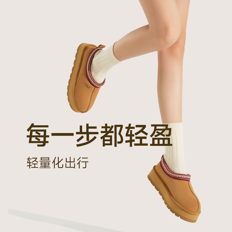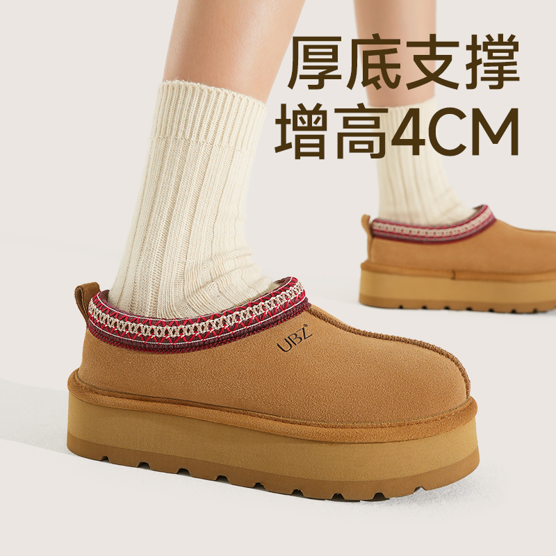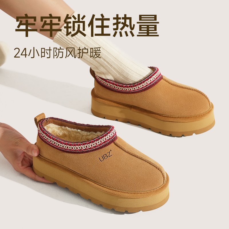 一脚蹬懒人棉鞋 UBZ 新款 厚底低帮民族风2025冬季 防水雪地靴女拖鞋