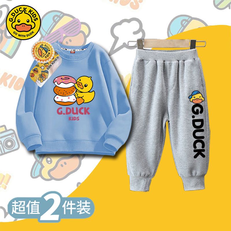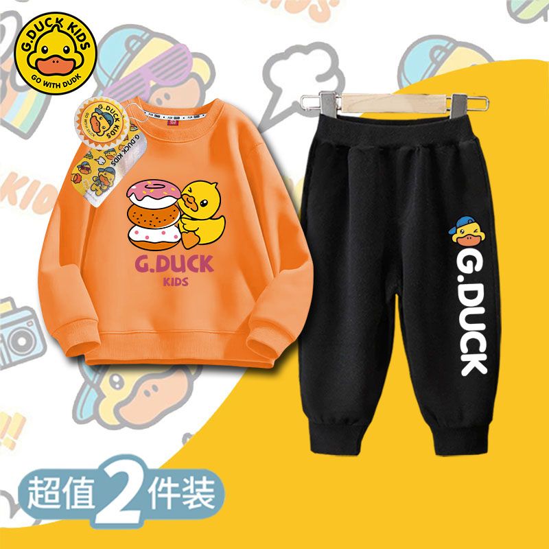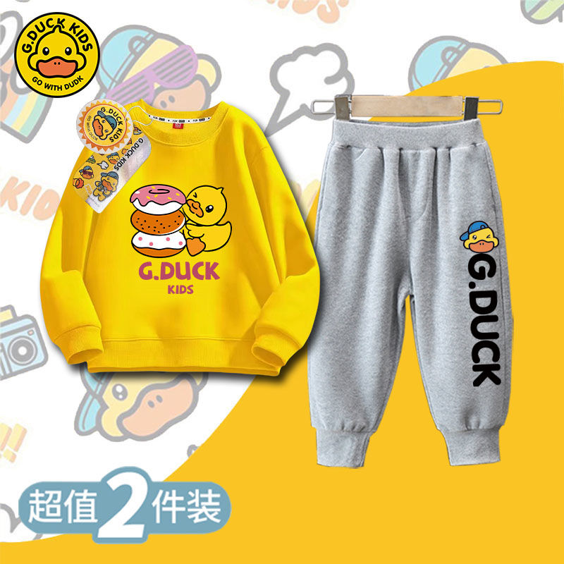中大童春秋季 2025新款 女宝宝圆领卫衣两件套 春秋装 小黄鸭男童套装