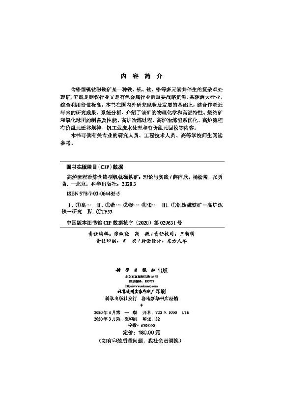 高炉流程冶炼含铬型钒钛磁铁矿 :理论与实践