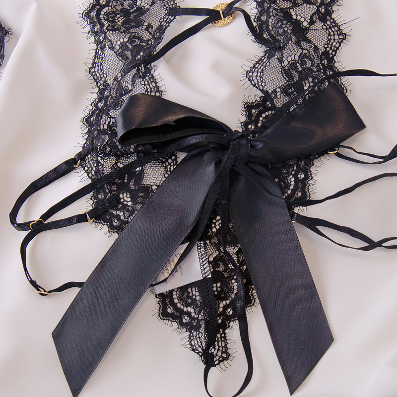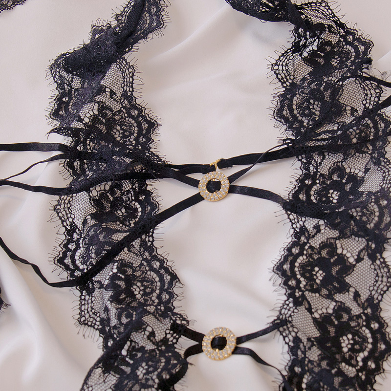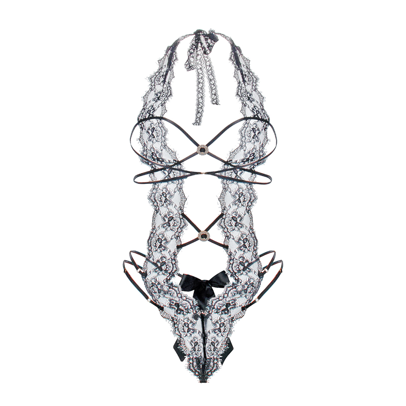 文胸套装 法式 性感睡衣女蕾丝纯欲风小胸挂脖连体内衣新款