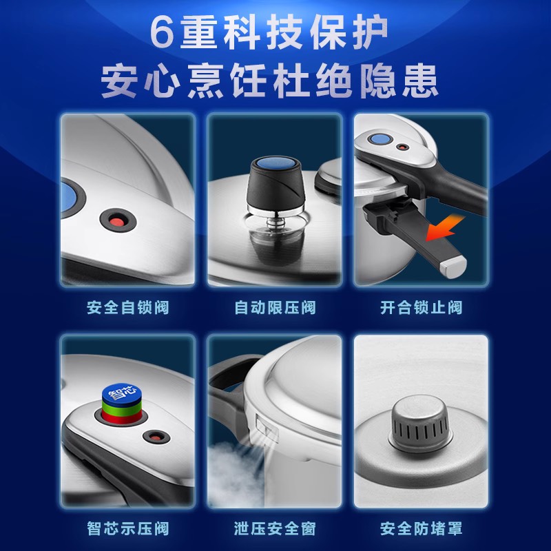 爱仕达不锈钢智芯高压锅家用燃气电磁炉专通用压力锅官方正品 防爆