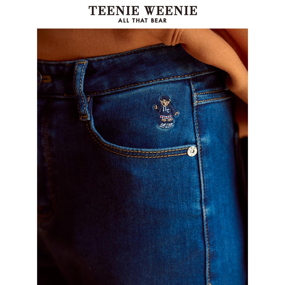 子牛仔长裤 TeenieWeenie小熊奥莱女装 加绒裤 基础弹力小脚裤 秋季