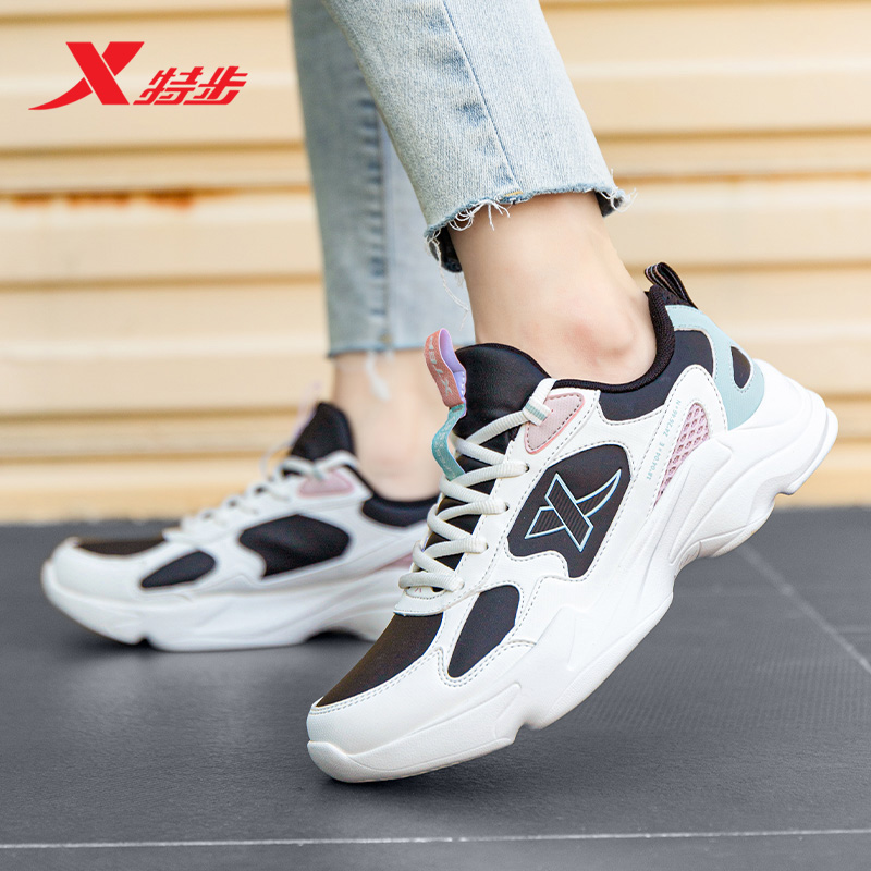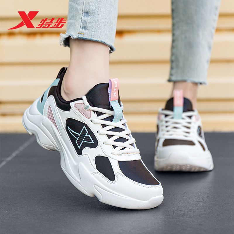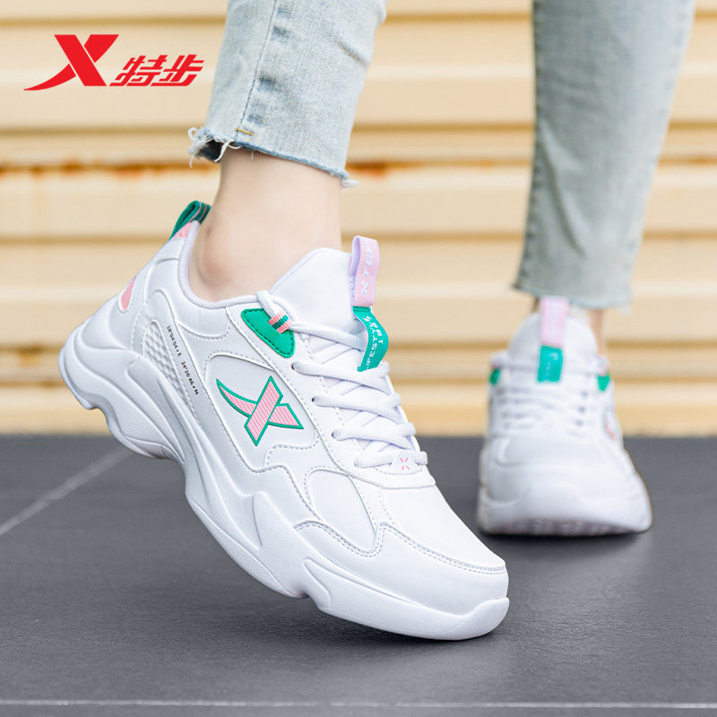 2025女款 新款 休闲鞋 子正品 特步女鞋 官方旗舰店运动鞋 皮面防水秋季