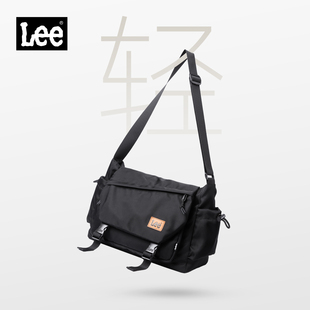 Lee潮牌男士 单肩包背包通勤斜挎包轻便大容量黑色休闲邮差包女