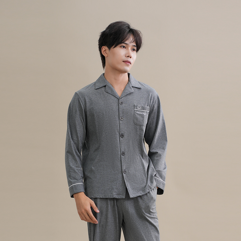 高级感女士外穿家居服套装 雪仙丽纯棉睡衣男款 长裤 翻领长袖 春秋季