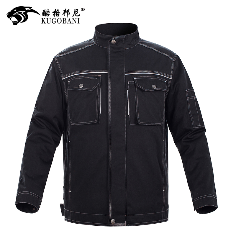 酷格邦尼黑色工作服男套装 可定制劳保工程服 汽修工厂车间春秋长袖