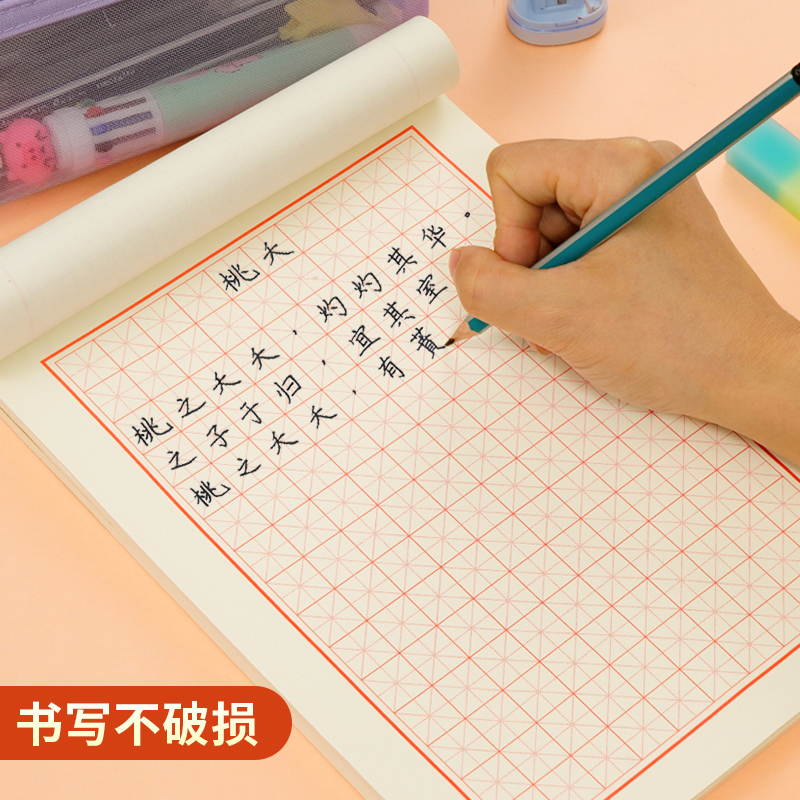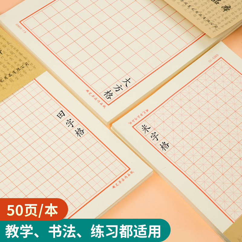 加厚 米字格田字格方格纸钢笔练字本硬笔书法作品练字专用纸成人儿童小学生练字纸书法纸书写纸练习纸楷书行书练字纸 5本共250张