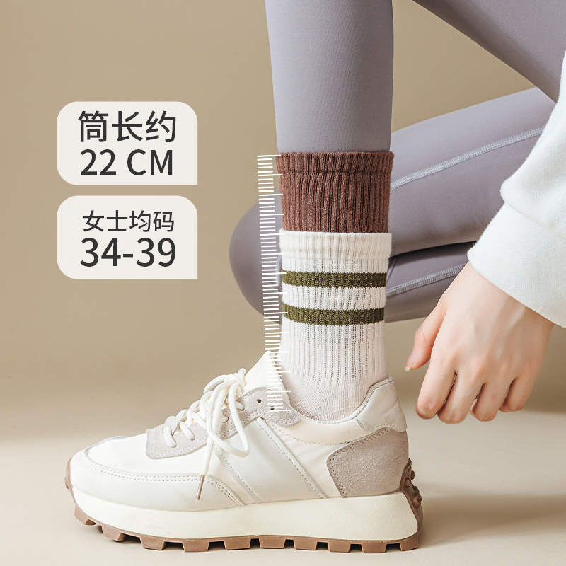 运动袜子女生中筒搭配鲨鱼裤 可外穿秋冬 纯棉无骨不起球条纹老爹鞋