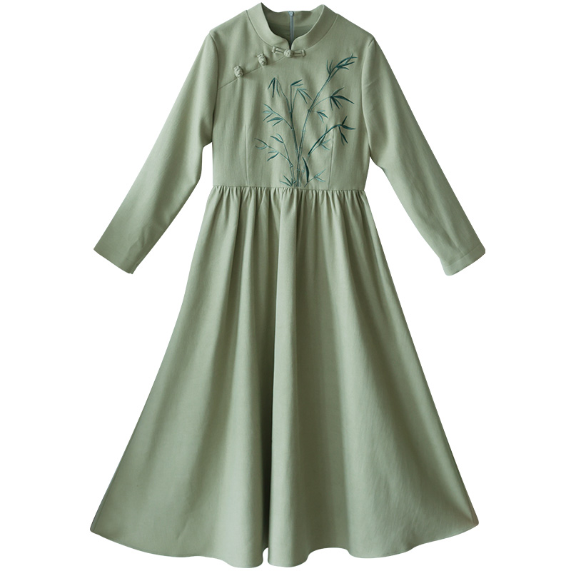 朗姿纯棉牛仔高腰a字连衣裙塔裙波嬉风气质2025年冬 免定金