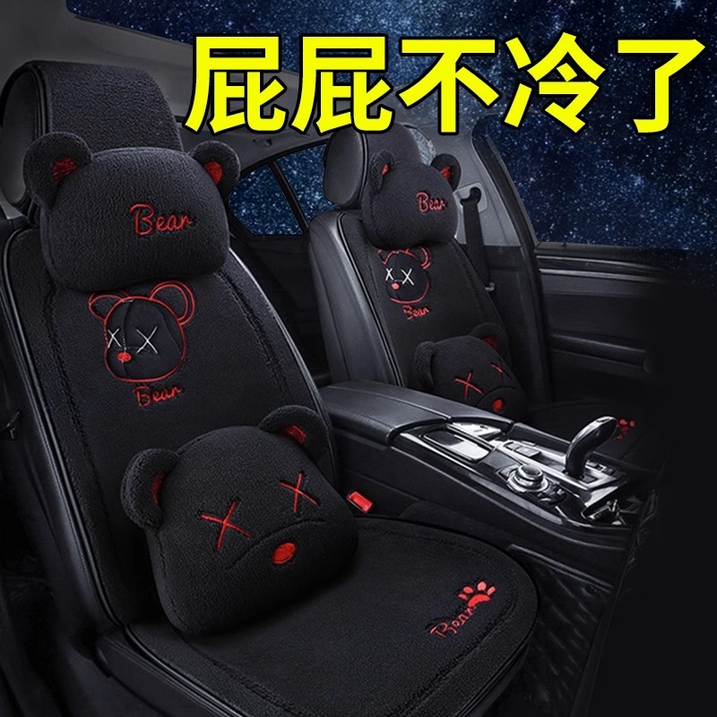 汽车坐垫冬季 卡通座垫加厚防滑女 短毛绒三件套通用单片主驾驶新款