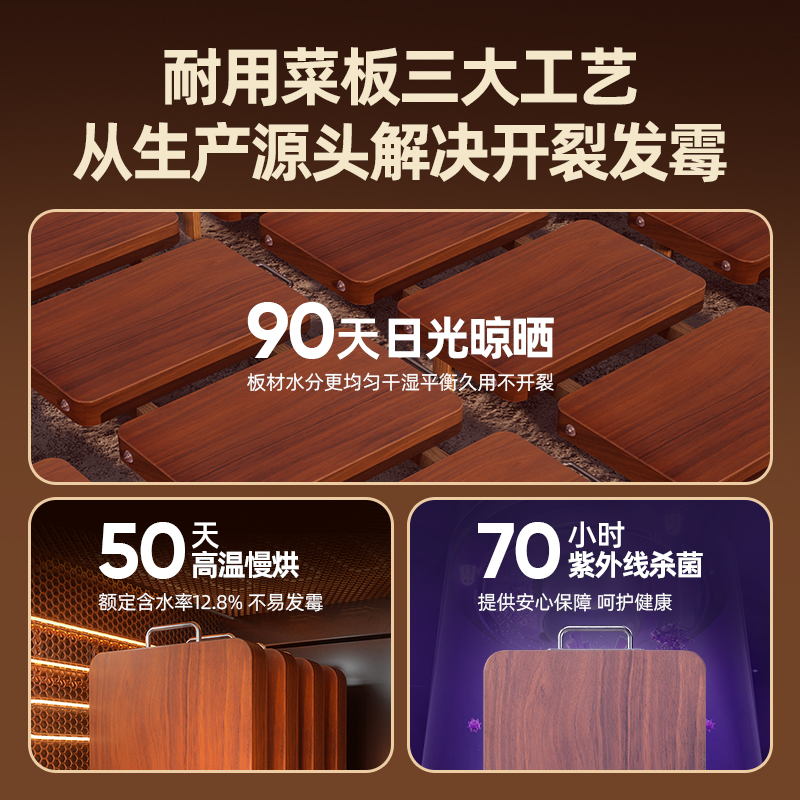 乌檀木菜板抗菌防霉家用食品级实木砧板厨房专用双面切菜案板粘板