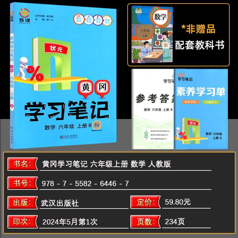 大课堂同步教材全解解读黄冈学霸笔记下课前预习复习武汉出版 状元 社 6年级上册人教版 LJCT2024秋黄冈学习笔记小学语文数学1
