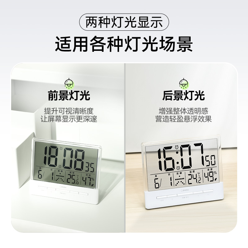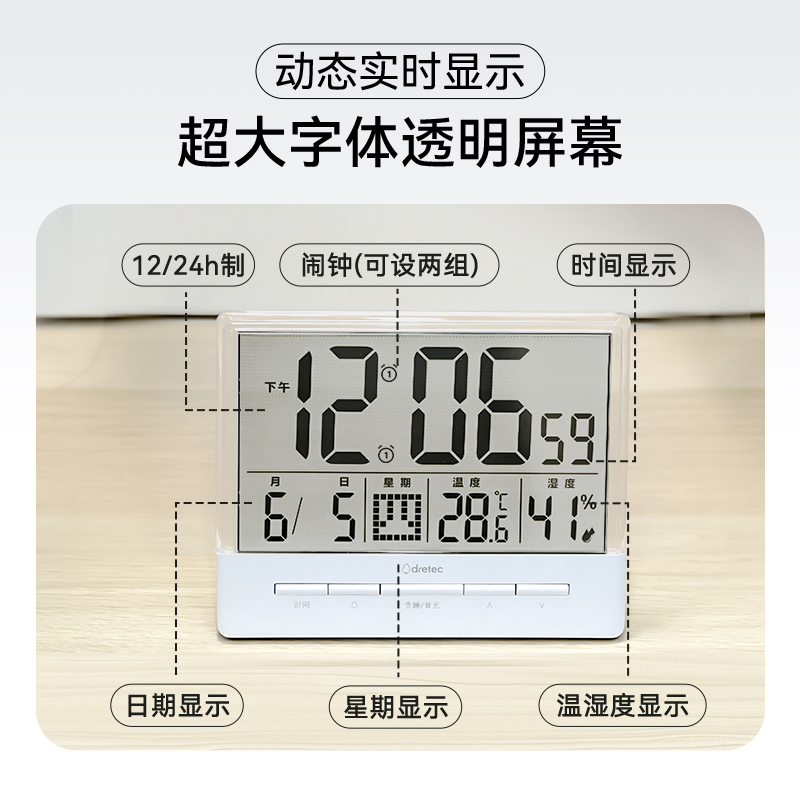 日本多利科透明时钟超薄屏幕闹钟床头多功能电子钟家居装 饰桌面