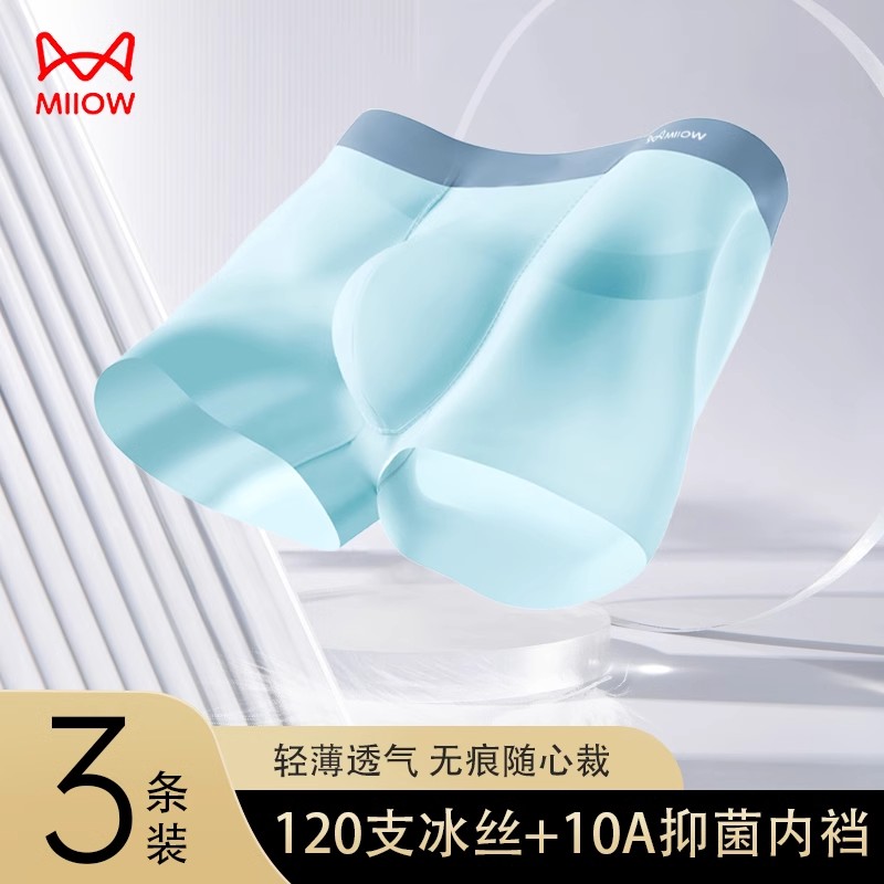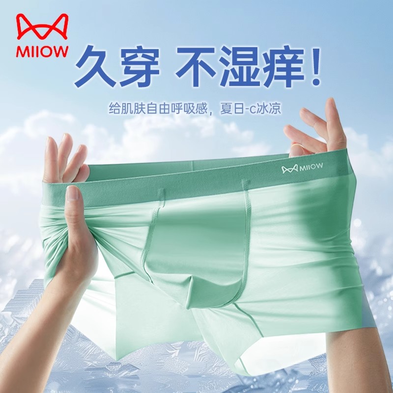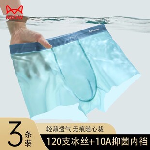 内裤 男生四角平角短裤 男款 青少年夏季 衩 冰丝无痕2025新款 猫人男士