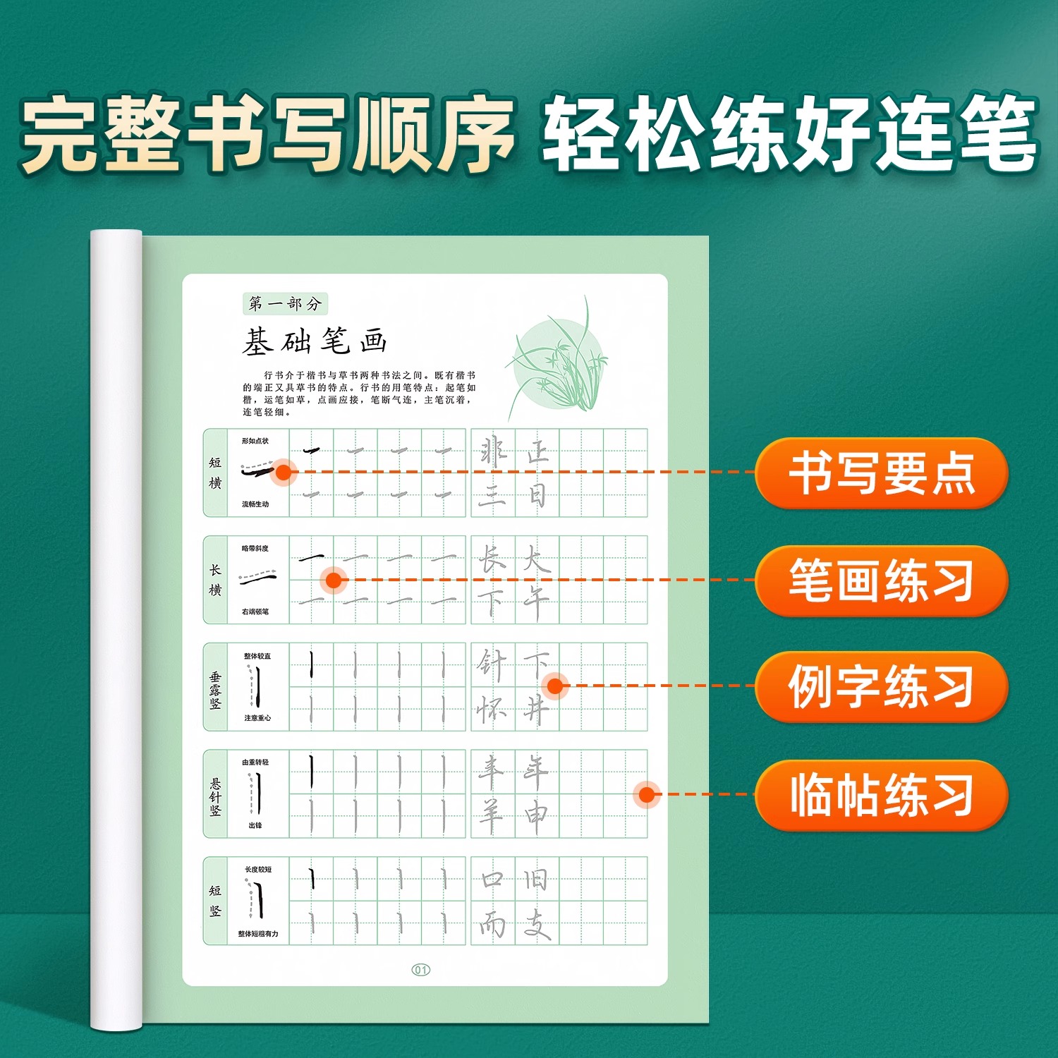 行书成人字帖练字行楷练字帖速成成年人静心男生女生字体漂亮钢笔使用入门套装 高中生初中生专用连笔字硬笔书法练字本楷书训练练习