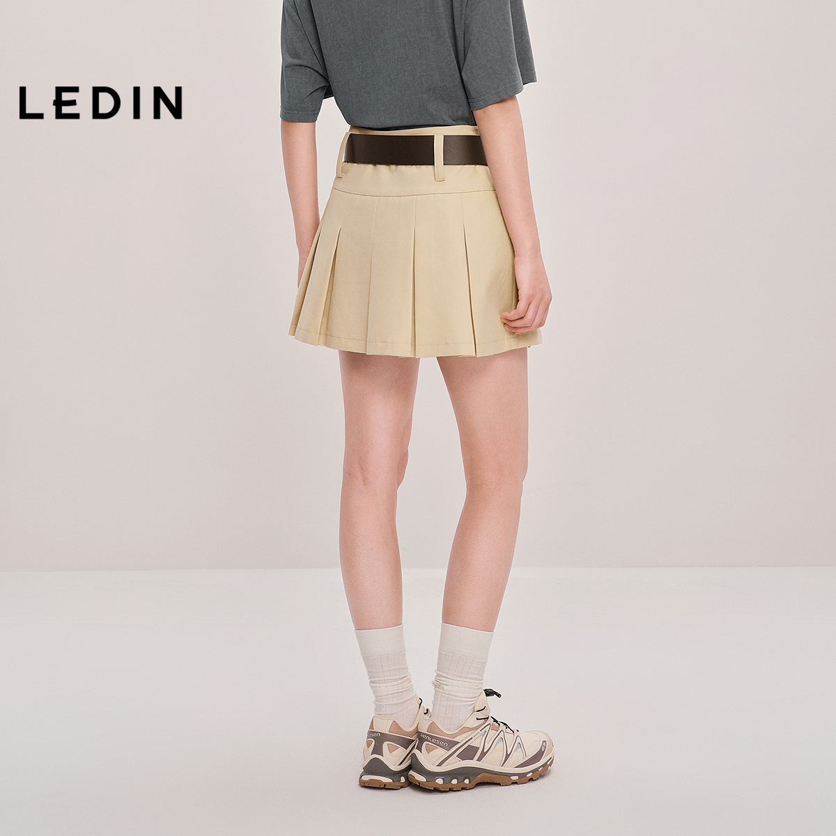 COCOBELLA丝光缎面压褶半身裙秋温柔风垂顺遮胯筒裙HS7026