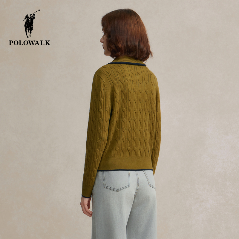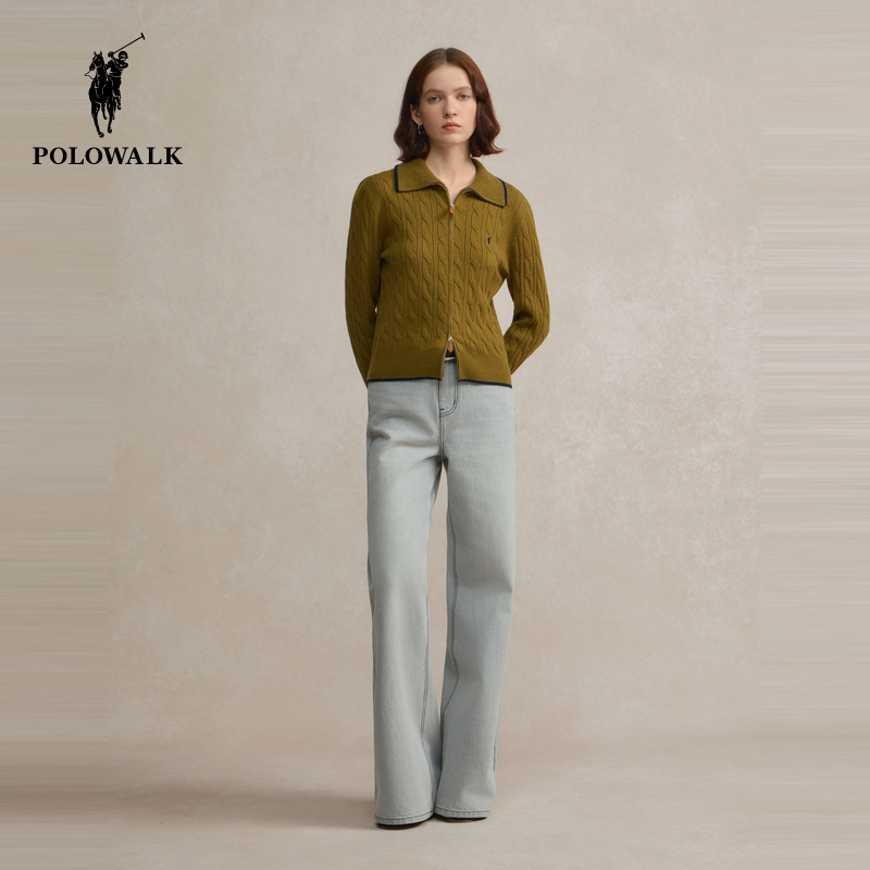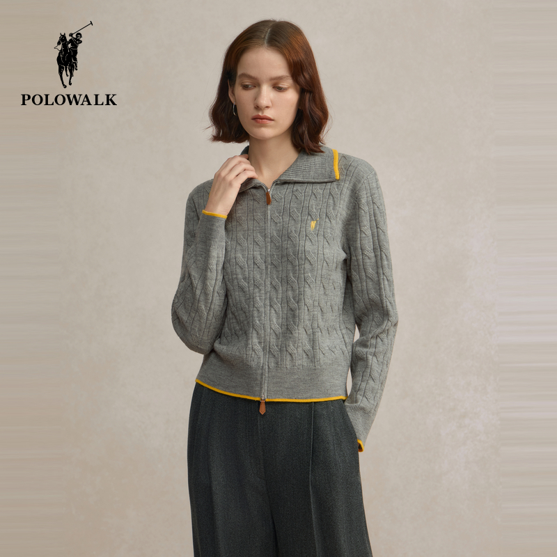 女式 新品 长袖 针织衫 POLOWALK女装 纯色通勤polo领针织开衫 2025秋季