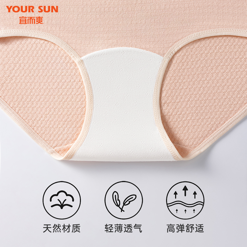 女纯棉抗菌加长裆透气三角裤 宜而爽提花棉高腰收腹内裤 SUN YOUR