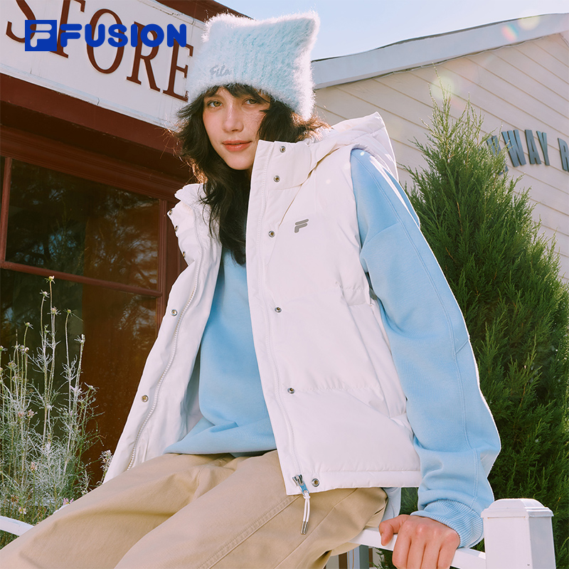 休闲连帽外套 时尚 FILA FUSION斐乐潮牌女子羽绒马甲2025冬新款