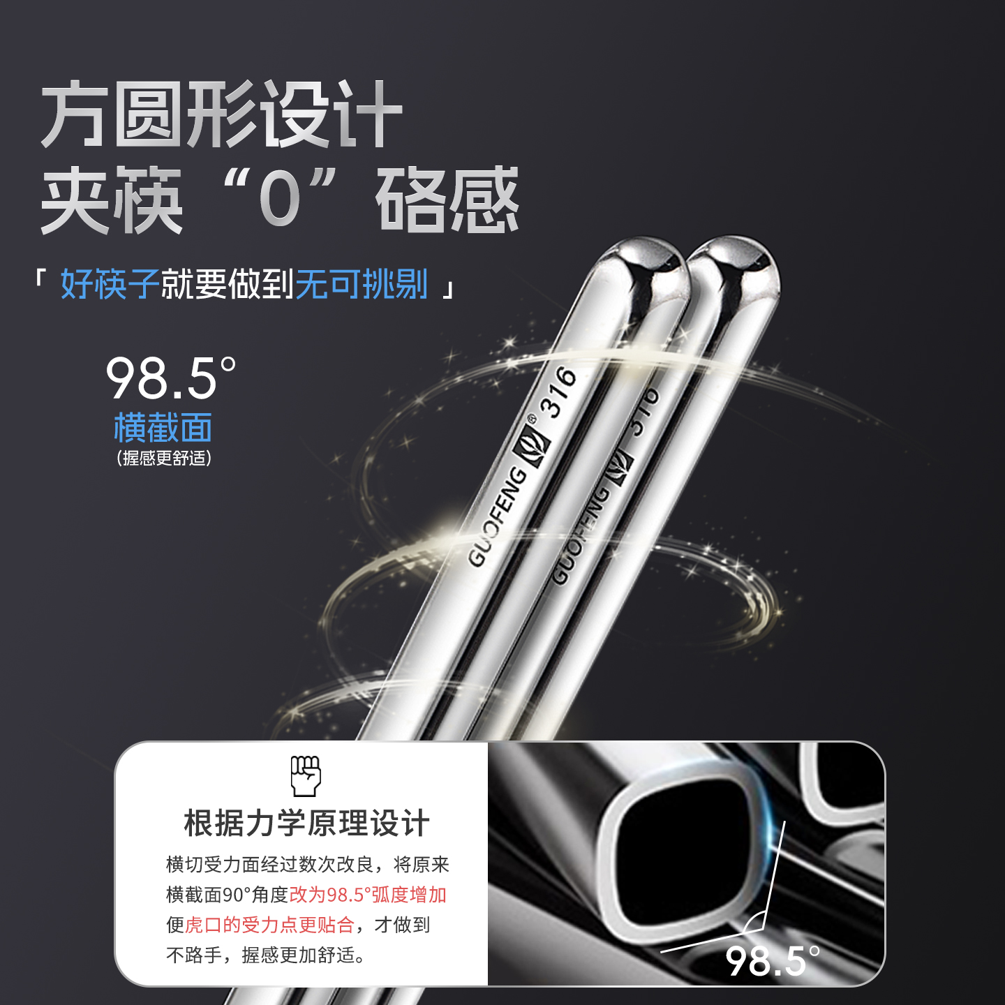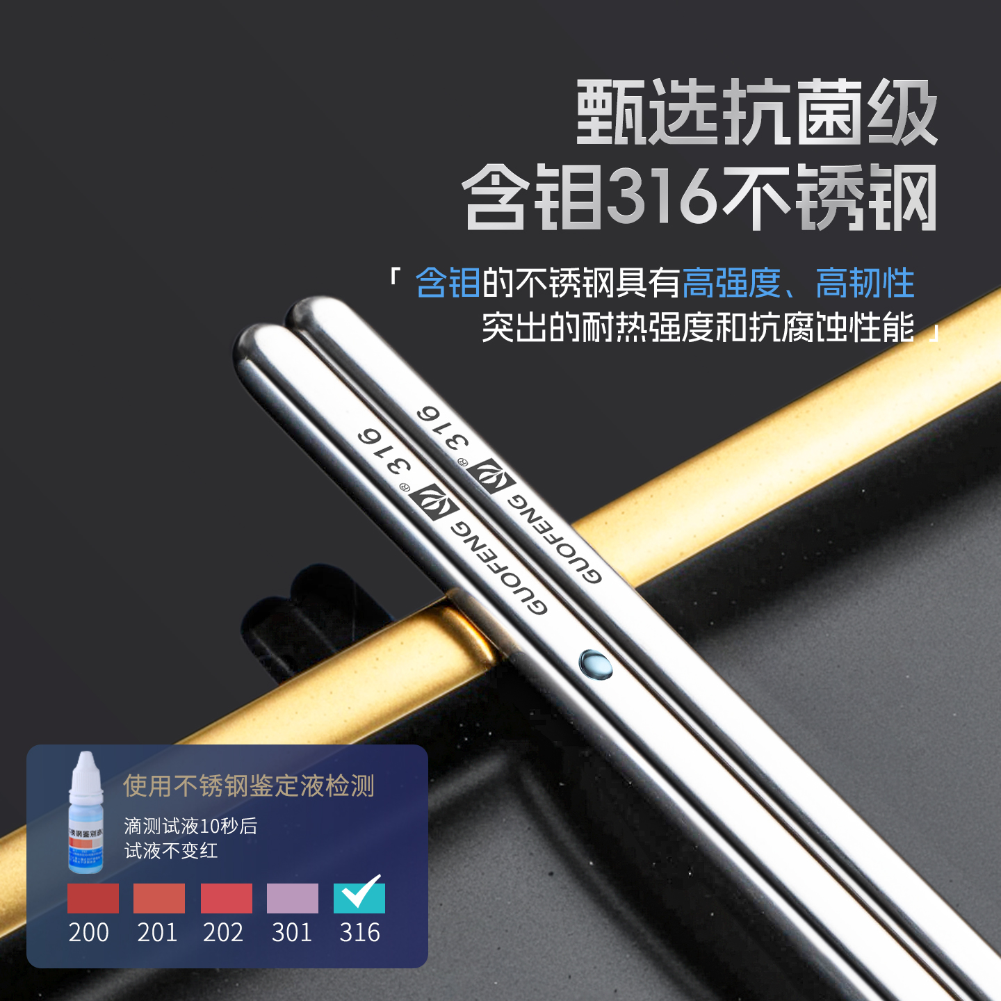 双枪316L不锈钢筷子家用防滑防烫304食品级抗菌防霉快子高档酒店