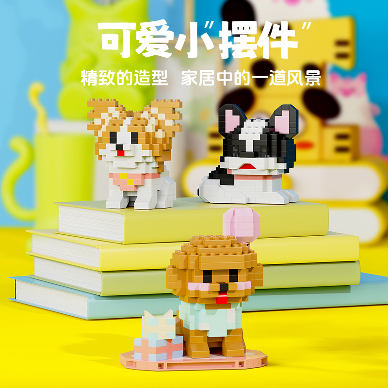 乐乐兄弟小狗积木儿童益智拼装 微颗粒泰迪模型男孩子动物玩具礼物